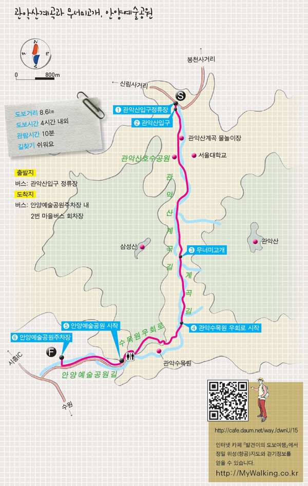 관악산계곡과 무너미고개, 안양예술공원 / 8.6km / 4시간내외