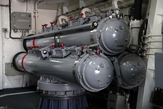 함미 부분에는 함대지 크루즈 미사일인 천룡과 장거리 대잠어뢰인 ‘홍상어’가 한국형 수직발사기(KVLS)에 장착돼 운용되는데 48셀이다. 또한 해성 대함미사일 발사관 16개가 함 중간 부분에 설치돼 있다.