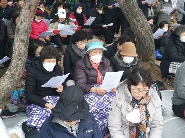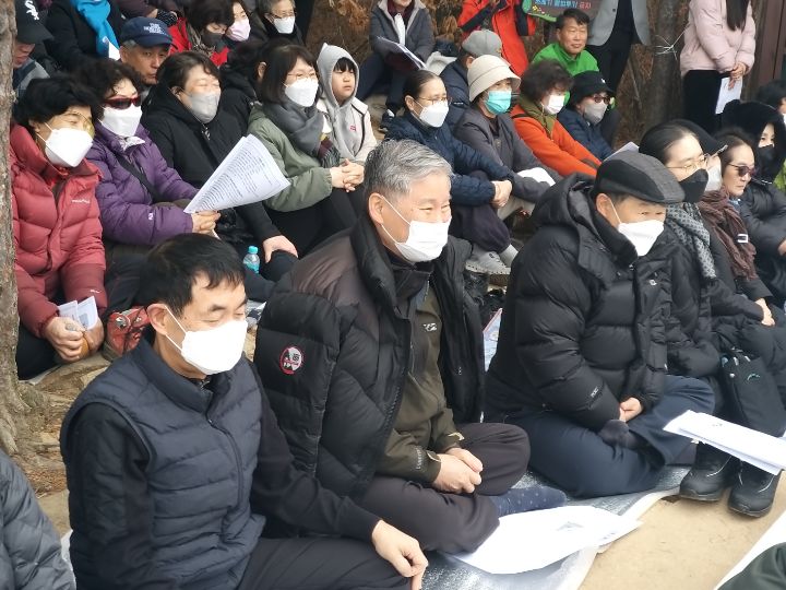 예년처럼 비봉산 망해암에서 10시30분에 기도를 올렸는데 일부 교도들은 안양역에서 도보로