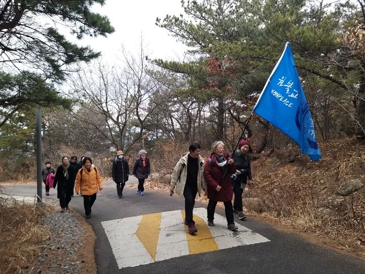 원평화 깃발을 따라 안양역에서 26명이 출발하였으나 중간에 많은 분들이 합류하여 50여명이 함께 했습니다.